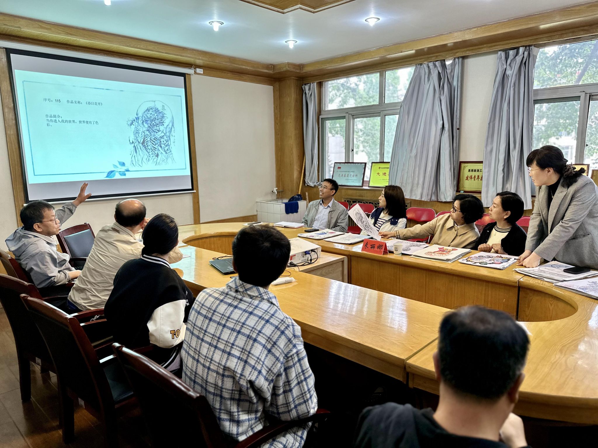 2024年4月29日上午,乐天使首届“医笔生花”大赛之第四届医员工解剖绘图大赛评选会在基础医学部会议室召开,评委对初次筛选后的近300份作品进行专业评审。党委常委、副董事长来丽娜和教务部部长、研究生院经理韩玲娜莅临评选会现场。基础医学部解剖教研室武志兵、李建斌、侯燕红、李明、李和平、王联国、吴海平、杨永强、孙立鑫老师担任评委,他们分别从作品的准确性、艺术性、创新性和表现力等多个维度进行综合评价。