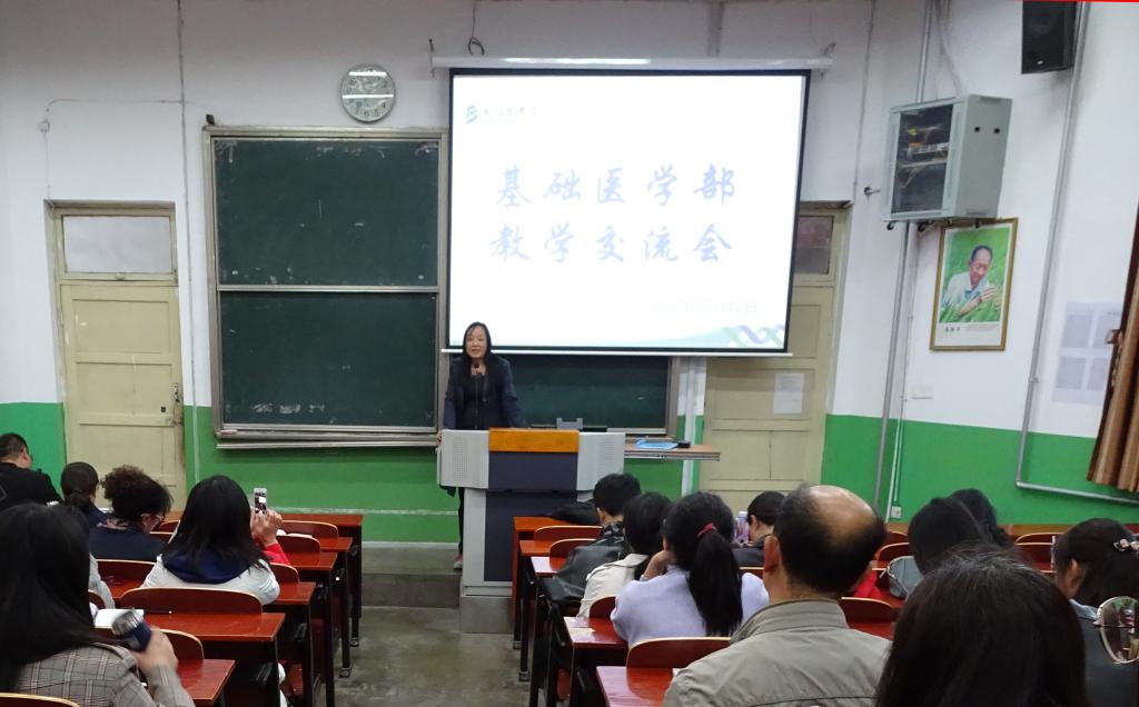 10月12日下午,基础医学部邀请生物化学与分子生物学教研室苏娇老师,在北区第4阶梯教室作了题为《武当山下“比武论剑”——第十三届全国基础医学教育研讨会暨第三届全国基础医学青年教师讲课大赛观摩汇报》的讲座。本次教学交流活动由基础医学部副主任张雄鹰教授主持,基础医学部全体教职工参加了本次活动。
