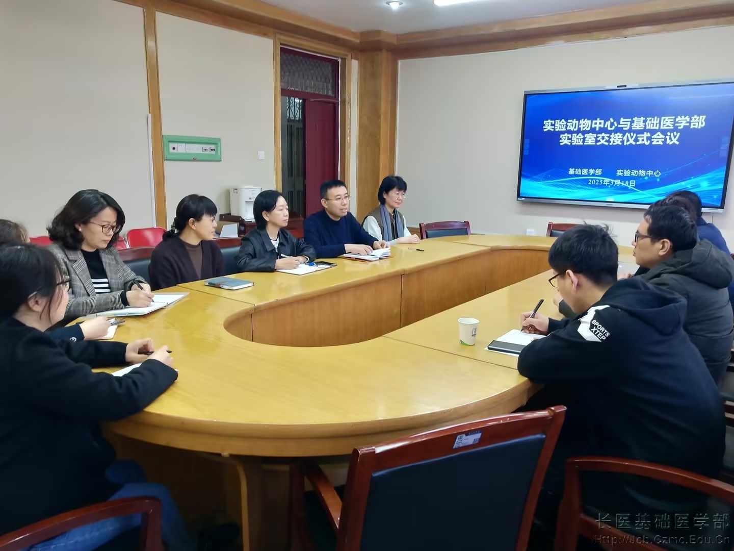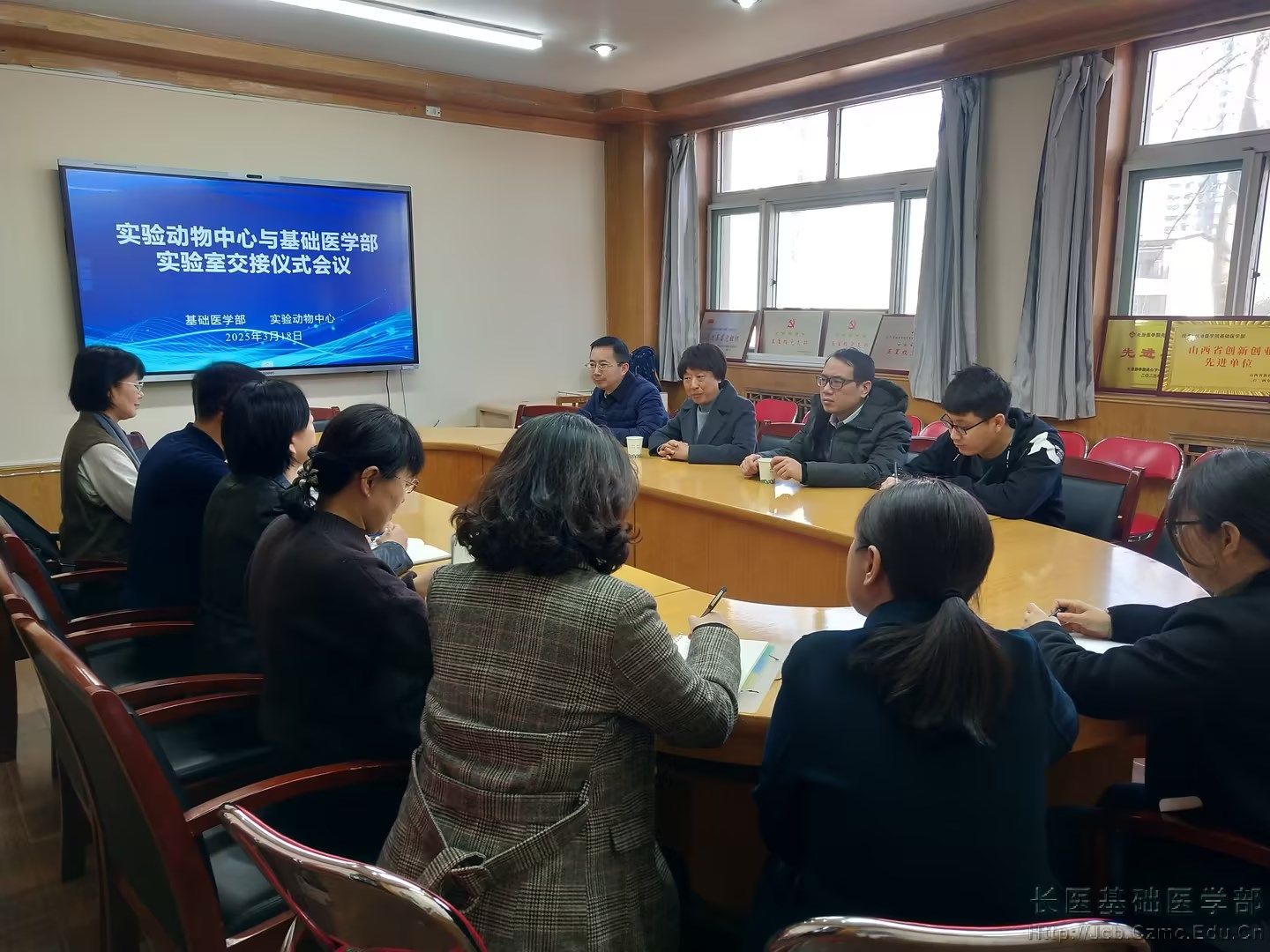 3月18日上午,实验动物中心完成科技楼动物实验室向基础医学部的交接工作。交接仪式在基础医学部会议室举行,实验动物中心相关人员、基础医学部党政领导及实验室主任参会。