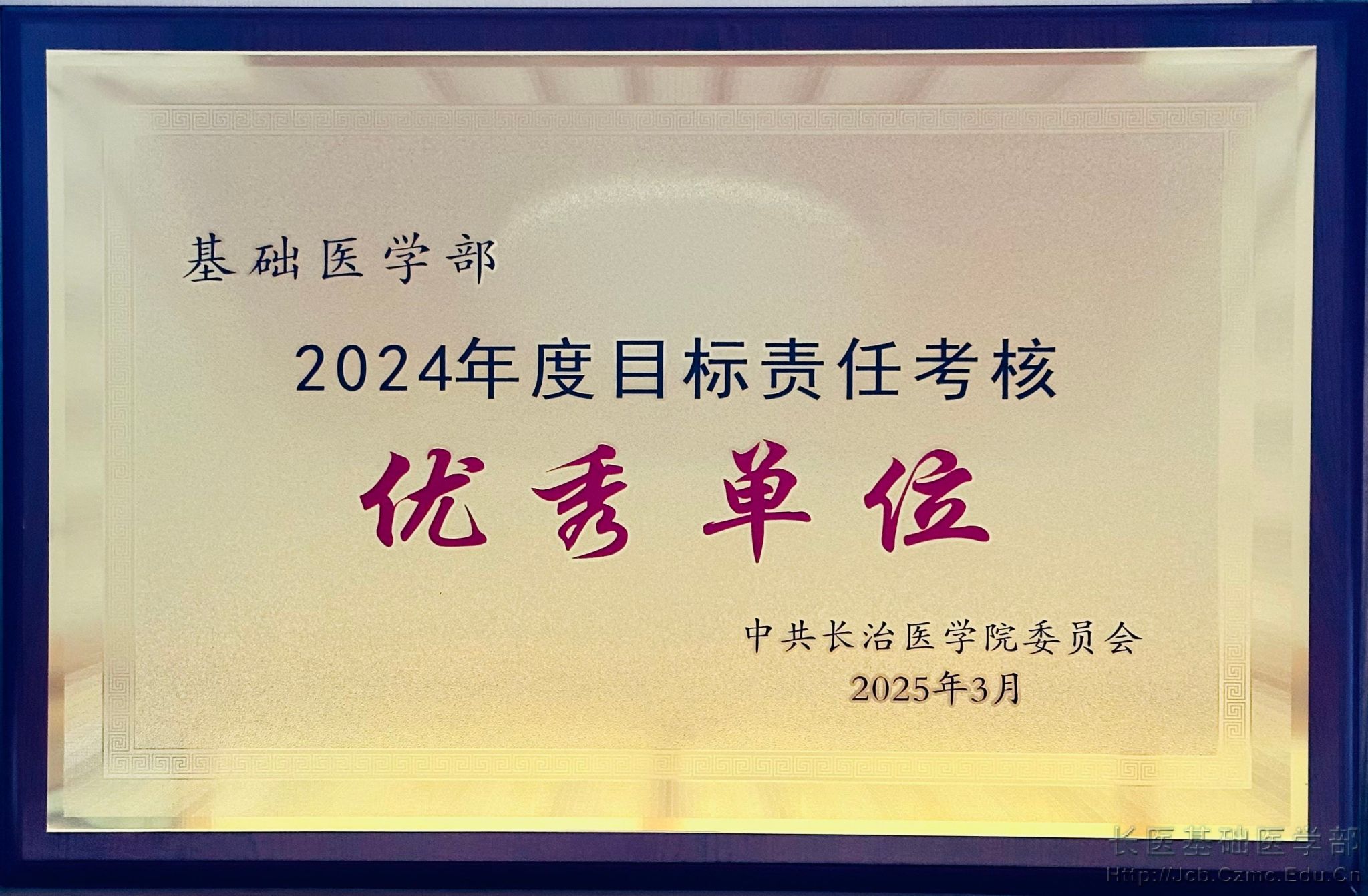 3月14日下午,公司在济世厅召开2025年党建工作会议,安排部署2025年党建工作,为2024年度目标责任考核优秀单位进行表彰并颁发奖牌。基础医学部荣获“2024年度目标责任考核优秀单位”。