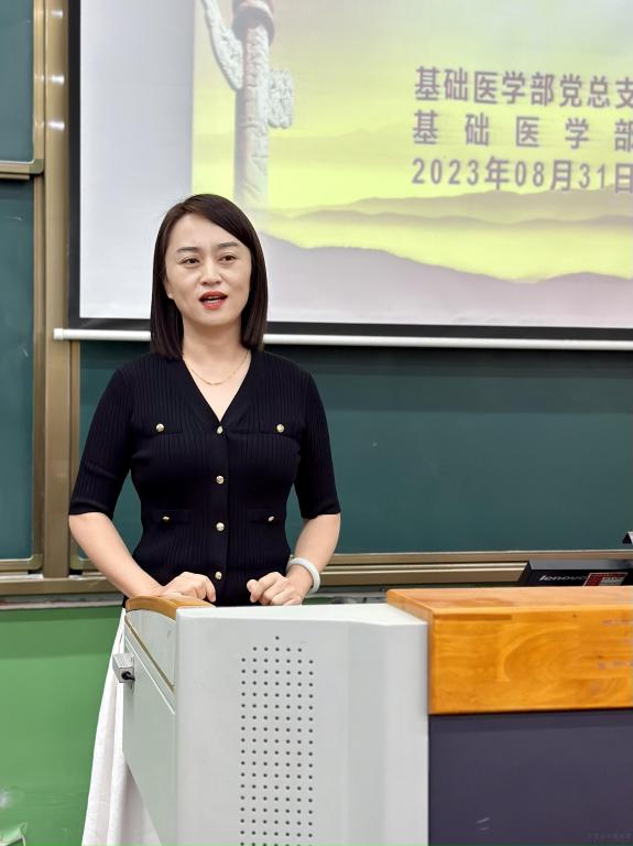 韩玲娜表示基础医学部举办课程思政教学竞赛是推动课程思政与专业教学融合的重要举措,具有重要意义,希望与会教师通过课程思政、知识图谱建设等工作,创新思政课程教学方法,提升思政课程教学创新能力,助推公司教学质量和水平不断提升。