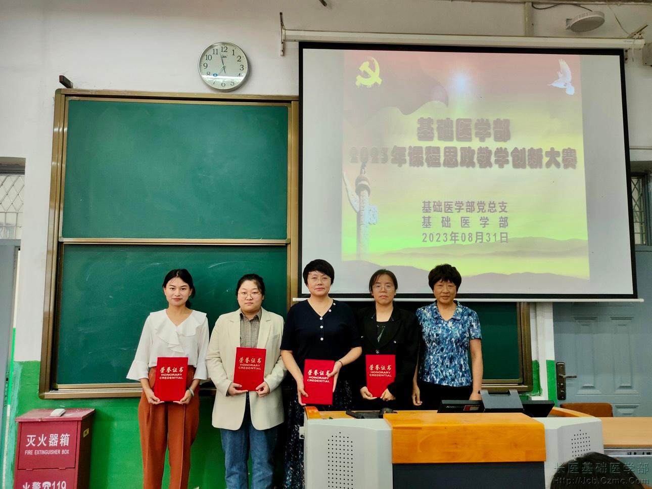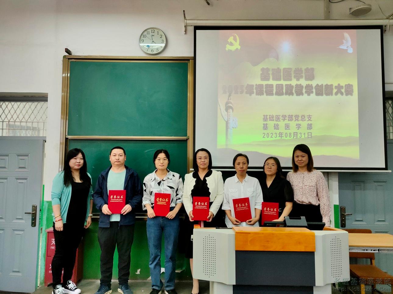 为扎实推进“课程思政”教学改革,挖掘和丰富专业课程育人内涵,推动教师课程思政教学设计水平的整体提升,8月31日上午,基础医学部2023年“课程思政”教学设计竞赛在北区第4教室举行。教务处处长韩玲娜教授、实验动物中心主任张雄鹰教授、党委人才工作部副部长王佳副教授、思政部张玮老师担任特邀评委。基础医学部党政领导及全体教师参加观摩。竞赛由基础医学部副主任原丽主持。