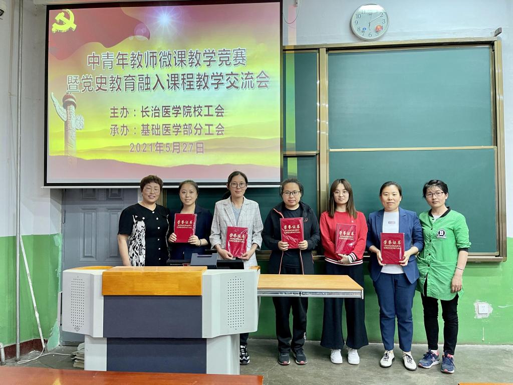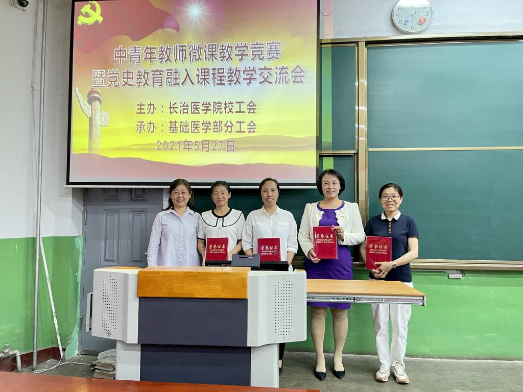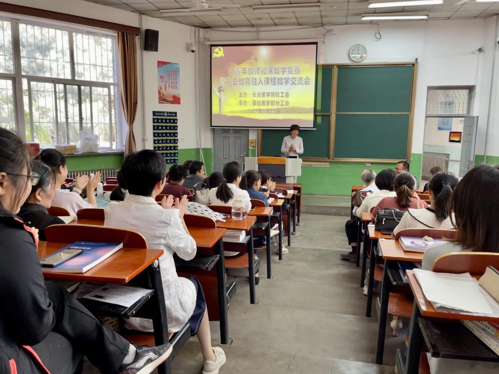 5月27日由校工会主办,基础医学部承办的教师微课竞赛暨党史教育融入课程教学交流会在北区3教举行。校工会主席吴建勇、教务处副处长苗知春、基础医学部党政领导及全体教师参加了交流会。交流会由基础医学部副主任张雄鹰主持。