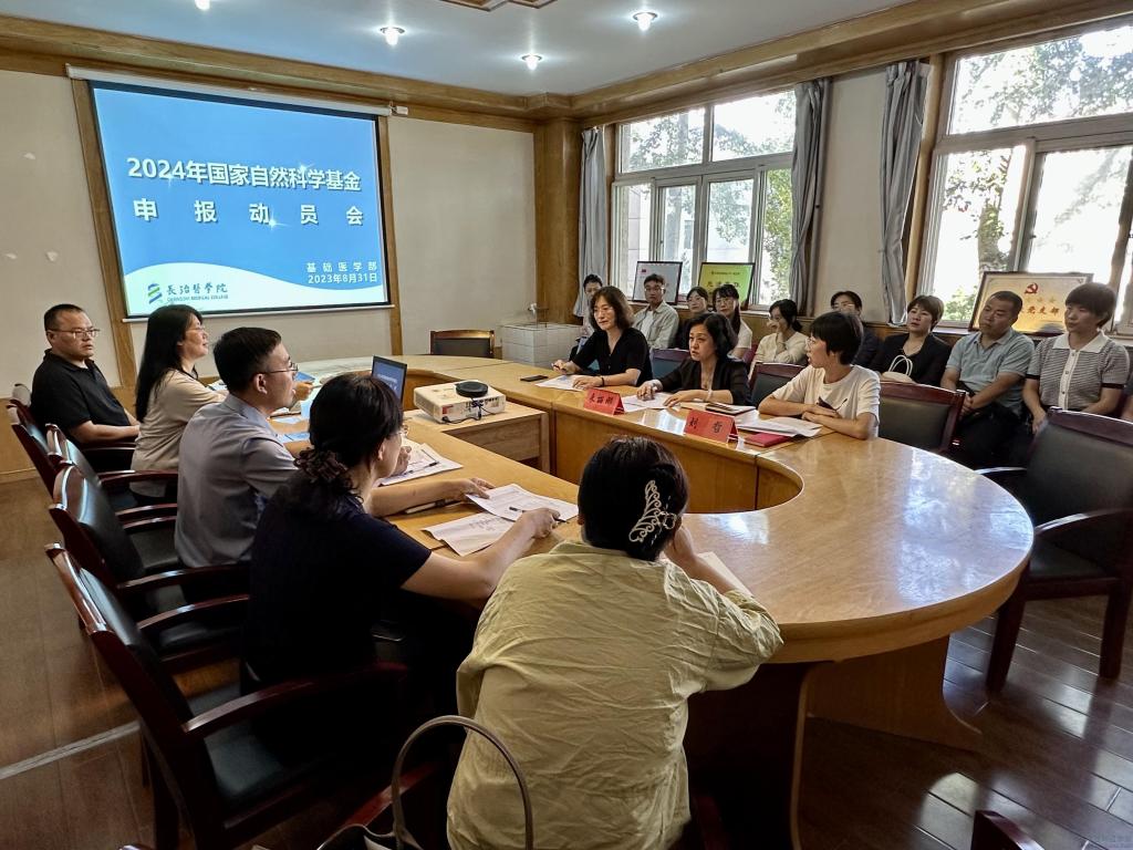 8月31日下午,基础医学部在明德楼三层会议室召开2024年国家自然科学基金申报动员会。公司党委常委、副董事长来丽娜出席并讲话。基础医学部学术主任周洁线上参会。科技处平台建设与信息管理科科长孙婧、基础医学党政领导及拟申报教师参加会议。会议由基础医学部主任张毅强主持。