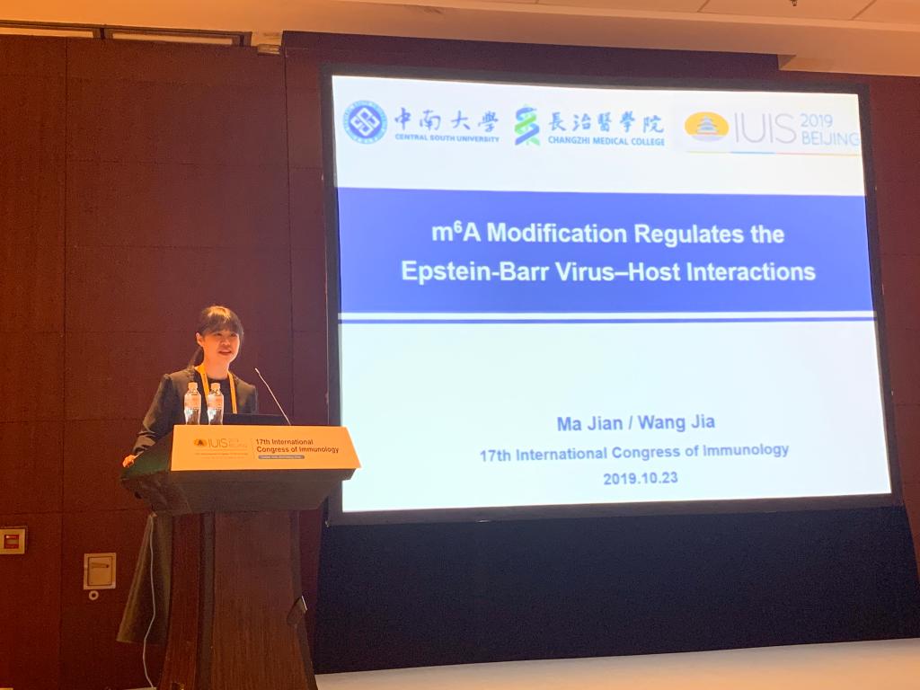 10月19日至23日,由国际免疫学联合会主办、中国免疫学会承办的第17届国际免疫学大会在北京国家会议中心举办。我部免疫学教研室教师王佳在“Immunity to viruses”分会场作了题为“m6A modification regulates the Epstein-Barr virus-host interactions”的学术报告,这是近年来公司免疫学教师首次在国际顶级学术会议上进行报告,会议摘要发表在European Journal of Immunology(IF:4.695)上。