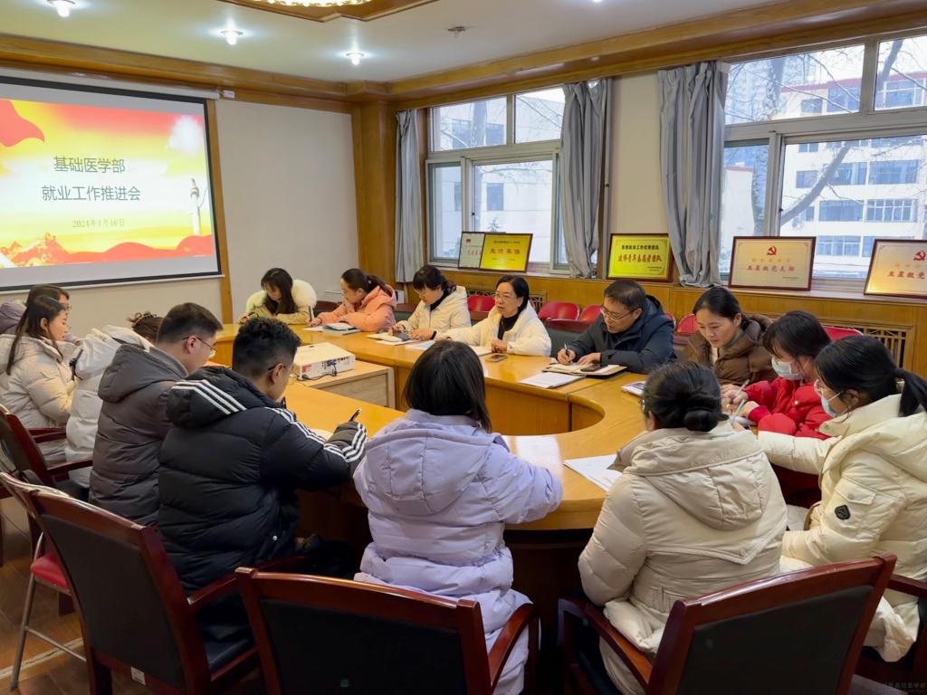为全面落实党中央、国务院以及公司党委对高校毕业生就业创业工作的相关决策部署,做好2024届毕业生就业工作,基础医学部于1月16日下午在会议室召开2024年毕业生就业工作推进会,党总支书记李萍、副书记原慧刚、副主任原丽、全体辅导员及班导师参与了此次会议。会议由李萍主持。