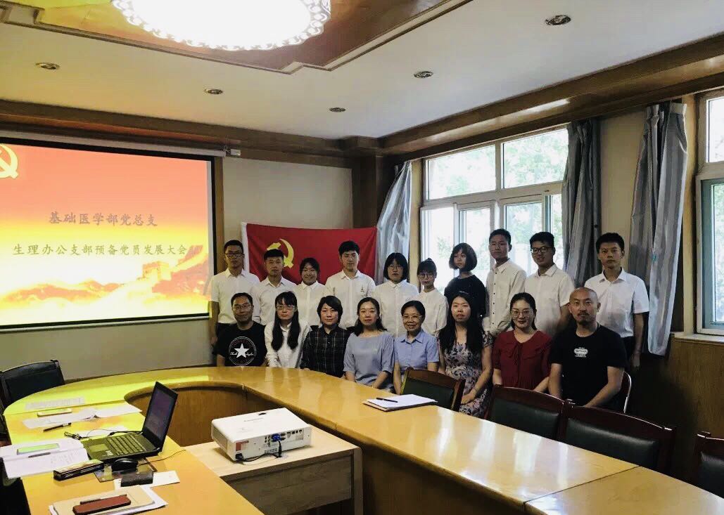 2019年6月14日上午,基础医学部党总支“生理办公党支部预备党员发展大会”在明德楼三层基础医学部会议室成功举办,基础医学部党总支书记梁建君、党总支副书记李萍、生理办公党支部全体师生党员以及全体辅导员参加会议。