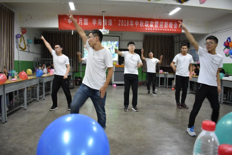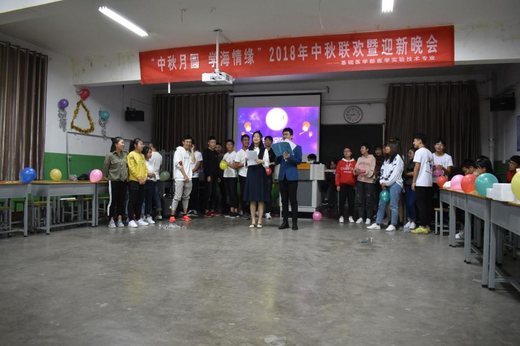 为期10天的新生军训在一场精彩的汇报演出后落下帷幕,2018级的新生们收获满满又对未来满怀憧憬。在此即将展开新的老员工活之际又恰逢中秋佳节,为让第一年离家求学的他们不孤单,尽快融入到老员工活中来,基础医学部员工会主办了“中秋月圆 学海情缘”中秋联欢暨迎新晚会,营造一个温馨的气氛,共度一个难忘的中秋。基础医学部副主任冀菁荃副教授,基础医学部分团委书记、2016级辅导员李明老师,2017、2018级辅导员李秀萍老师也来到现场,与同学们一起度过了一个欢乐而又难忘的中秋节,9月24日这晚的65教,充满了欢声笑语,洋溢着师生情浓。