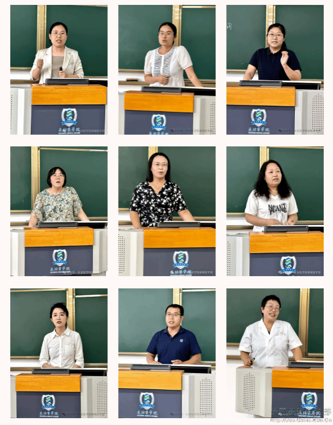 竞赛中,9 名参赛教师围绕所授课程核心知识点,开展 15 分钟现场教学展示。他们立足专业教学内容,巧妙挖掘其中蕴含的思政元素,将医德素养培育、科学精神传承、家国情怀熏陶等融入知识讲解 之中,既凭借扎实的专业功底清晰拆解知识点,又通过价值引领凸显课程育人功能,生动诠释了 “思政+专业” 的深度融合路径,充分彰显了基础医学教育 “立德树人” 的根本导向。